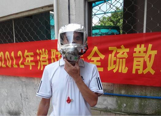 安全环保部严政科长亲自示范使用防烟面罩