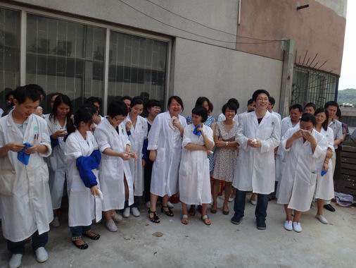 下午210分,在总指挥张彬书记的口令下,质量管理部2012年度消防安全演练拉开了序幕。顿时,化验室内升起滚滚浓烟,警铃大作,“火势汹涌,无法控制”,质管部立即启动紧急疏散预案,疏散所有员工。只见,所有员工手拿毛巾湿布捂住口鼻,弯腰靠边,从消防楼梯有序“逃”跑。安全环保部王医生带着药箱,随时准备抢救受伤的员工。经测算,从火警开始到最后一位员工撤离,总共用时3分钟。