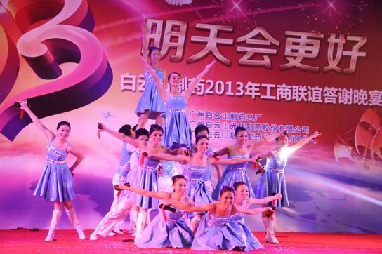 《广药放歌》是艺术团2012年新排的节目,以快板的形式配以激昂的音乐和动作,把广药集团以及下属企业文化展现出来,这个节目曾代表总厂参加广药集团表彰劳动模范暨职工文艺晚会,并在广药的舞台上大放光彩。去年11月下旬,我们艺术团接到了一项艰巨的任务——根据集团李总的要求,要将大家记得滚瓜烂熟的《广药放歌》重新创作,增加十八大、新型城市化建设、中医药强省、1+15政策等内容,在重新撰写快板词后又重新录音、排舞蹈动作、记快板词,PPT的内容也要相应增加,一个星期后就要在12月3日晚的广药大客户会上演出!经过紧急动员,利用周末加班加点排练和背词,我们终于如期成功演绎了新版《广药放歌》。