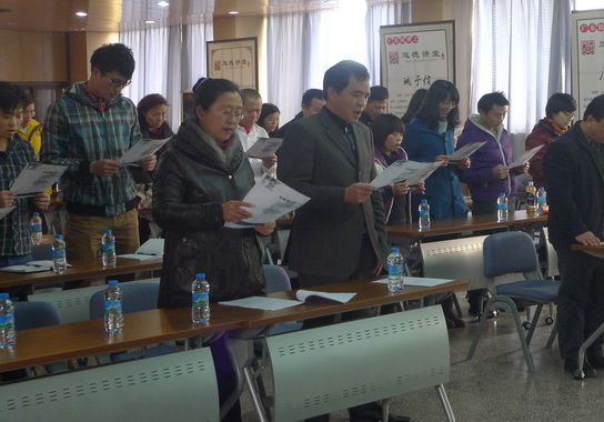 本期道德讲堂分“自我反省、唱歌曲、学模范、诵经典、念劝善词、谈感悟、行崇德礼、送吉祥、行善举”九个环节,让到会的员工代表沐浴了一次道德洗礼。