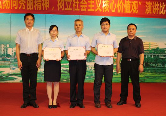 在本次演讲比赛上也进行了我们总厂举办的“弘扬向秀丽精神,树立社会主义核心价值观”红段子比赛的颁奖。在红段子的比赛中,我们部门也喜获佳绩。在来自十个党支部的21条获奖的红段子中,有5条出自我们部门。其中谢晓霞的两条红段子分别获得一、二等奖,胡晗思源获得二等奖,伍玉仪、黄成海均获得三等奖。