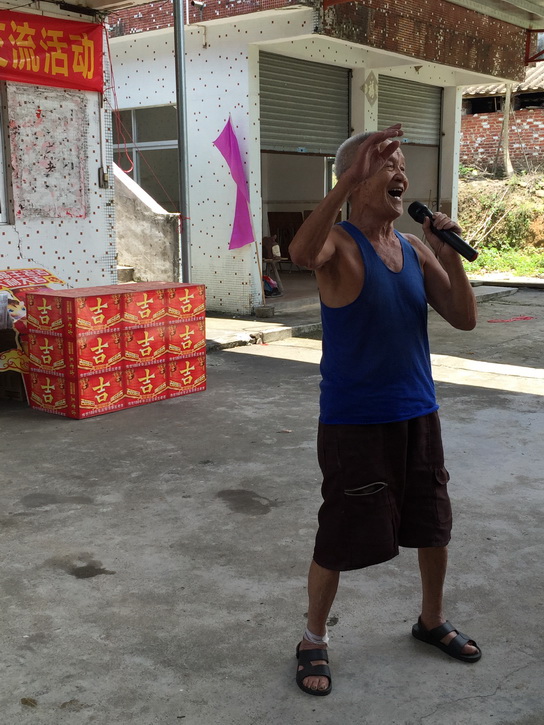 老人兴致勃勃地高歌一曲