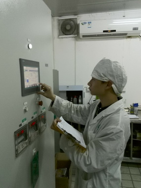制水车间员工在做设备运行记录