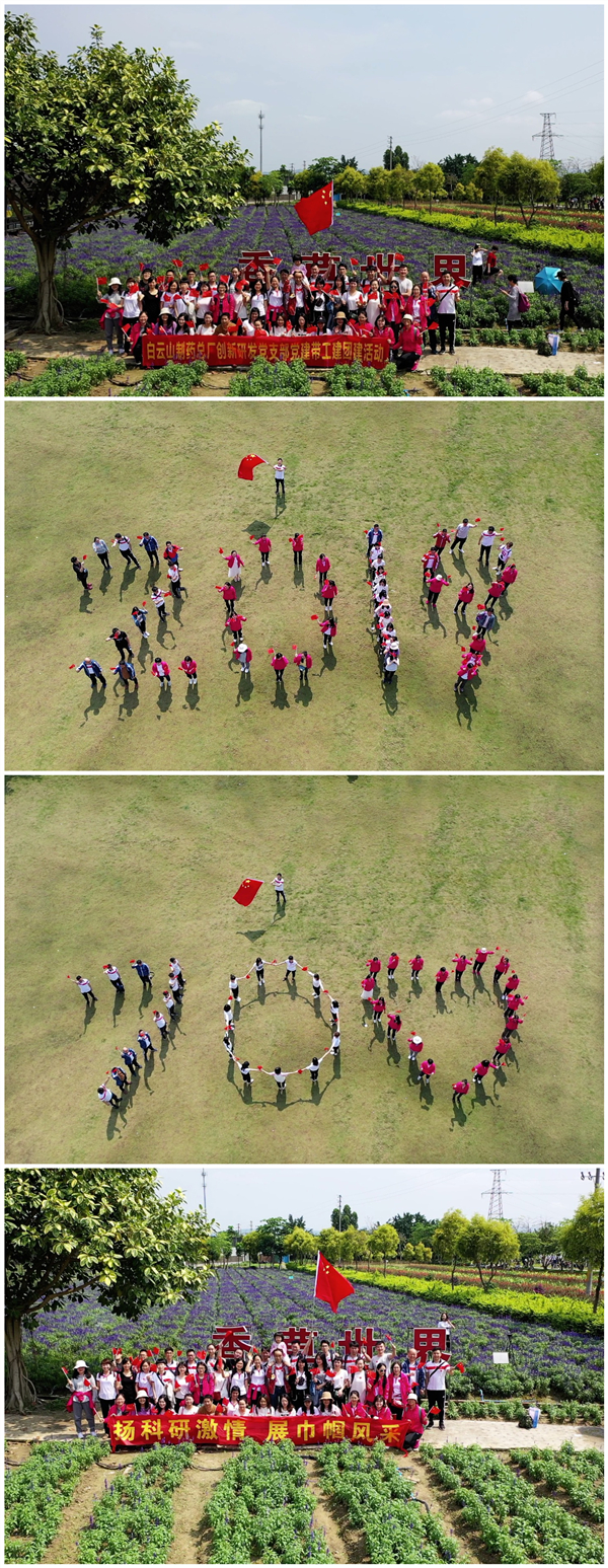 30日上午,参加活动的同事在一片欢声笑语中向首个目的地---花都香草世界出发。人间三月天,最美在花间。香草世界各种花儿竞相开放,绚丽娇艳,满园春色。为了留下这精彩的一刻,创新研发党支部与工会分会负责人精心策划了《春天花海里歌唱祖国》等快闪视频的拍摄,在王健松副厂长的带领下,药研所的才艺组合闪亮登场——杨放的古筝弹奏和高琳的电子琴伴奏,药研所艺术团成员奉献了精彩的舞蹈表演,50多名员工齐声高歌《我和我的祖国》 ,更是把活动推向了高潮。为了契合“建国70周年”纪念主旋律,表达对祖国母亲的热爱及祝福,坚定地走中国特色社会主义道路,大家摆出“2019”、“70”等纪念造型并通过航拍全程记录。