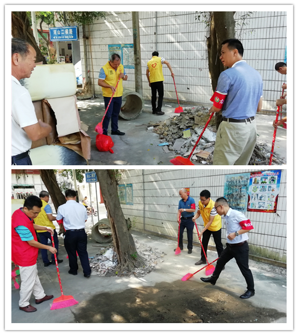 活动当天,第四党支部党员按规定时限完成到社区报到工作,亮明了党员的身份,并签订了社区服务记录表,自觉接受社区党组织和居民群众监督。随后来到揭西县河婆街道河山社区进行服务活动,对社区地面上的垃圾、墙上的张贴的小广告及堆放的垃圾进行清理。经过大家的共同努力,小区环境卫生有了很大的改善。