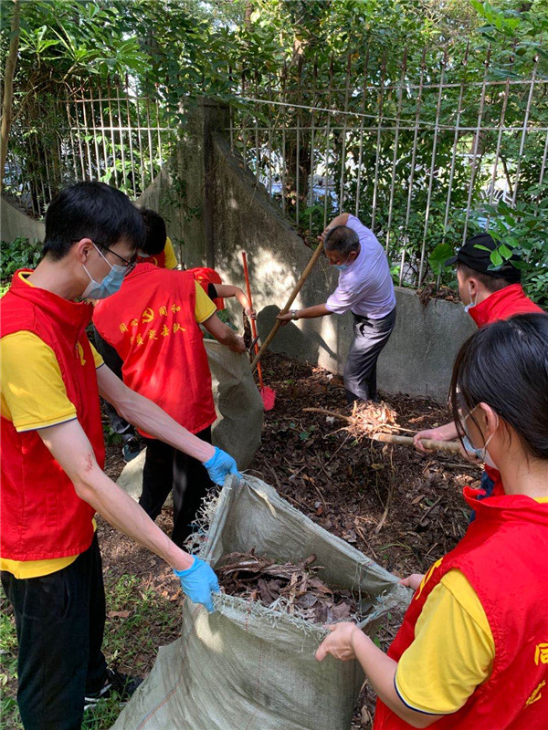 垃圾分类宣传完成后,支部党员和社区工作人员对前山宿舍区的卫生“黑点”进行了全面清理。大家干劲十足,不怕脏,不怕累,有的负责拔草,有的负责清理杂物,以自身的实际行动引导社区居民热爱家园,提高文明意识。经过四十多分钟的劳动,杂草、垃圾被清理干净,宿舍区焕然一新。