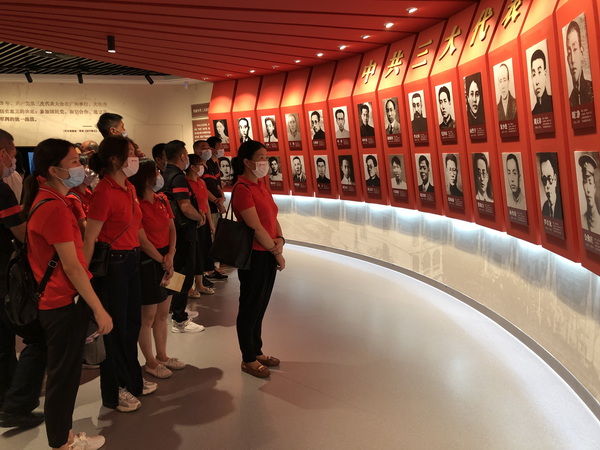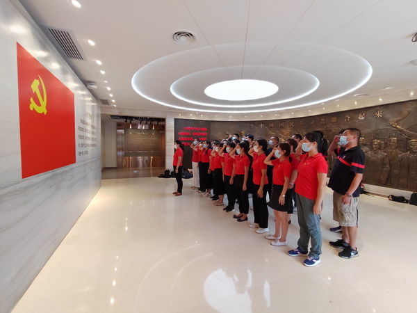 为深入学习贯彻习近平总书记“七一”重要讲话精神,从党的奋斗历史中汲取前进力量,引导党员深刻感悟共产党员的初心使命,2021年7月30日下午,金戈车间党支部全体党员前往中共三大会址纪念馆,参观大会历史陈列,并重温入党誓词。