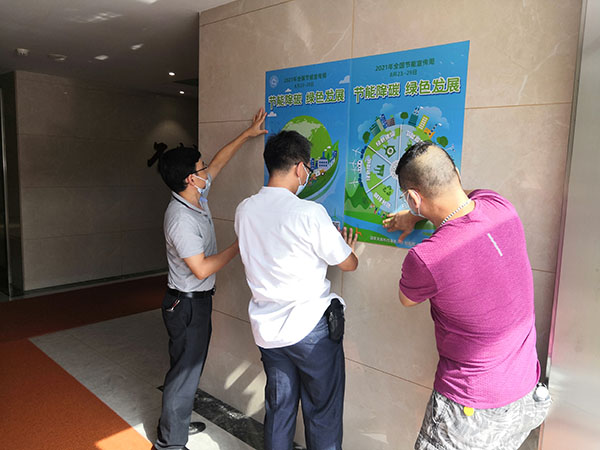 在进行知识普及后,第六党支部党员在办公楼、集体宿舍、制造部门等区域,张贴了宣传海报和节能标识,宣传普及绿色发展理念和节能降碳知识,营造全社会共同参与节能低碳氛围。