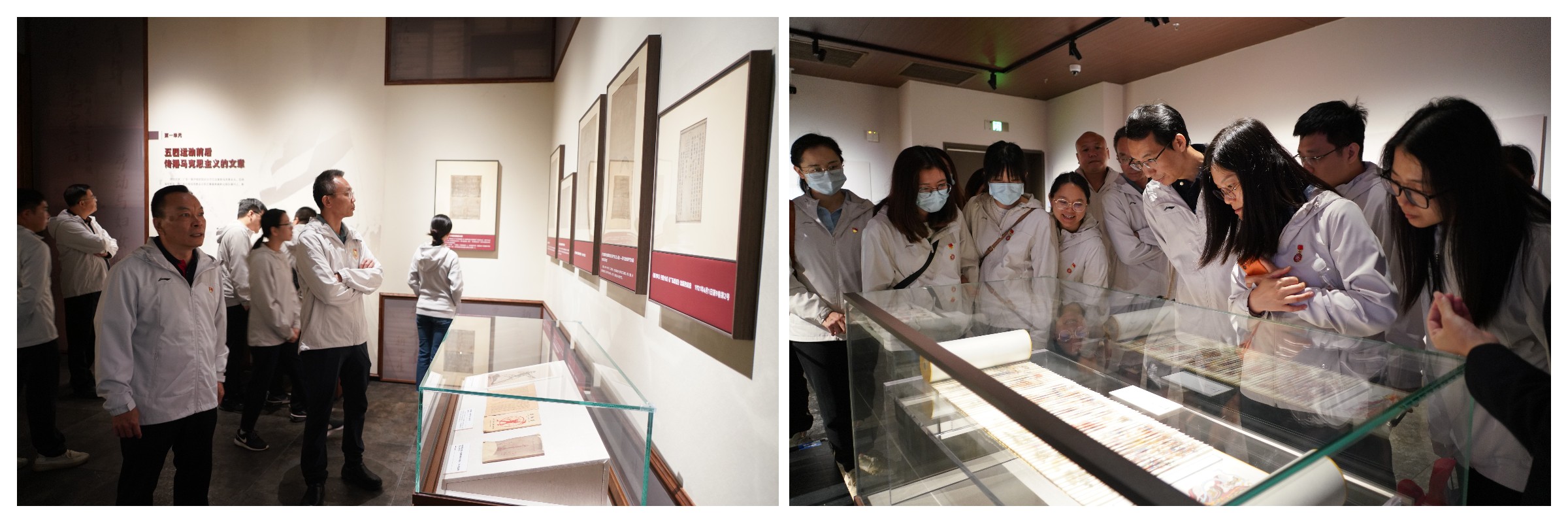 在讲解员的带领下,第五党支部一行在“互鉴千年 融通未来——海上丝绸之路专题版本展”中近距离观看了海上丝绸之路沿线国家在交流互鉴中产生的文献记录及多元版本,直观感受了波澜壮阔的历史文明交流图景;在“千秋写印 华夏有章——中华版本概览”展馆中感受从甲骨、竹帛、纸书到多元的数字化媒体的中华版本演绎过程,体会中华文化版本承载的灿烂文明;在“红色印记 映照初心——红色广东专题版本展”中,领悟中国共产党在广东地区团结带领人民进行革命斗争的光荣历史,进一步坚定初心奋勇前行……